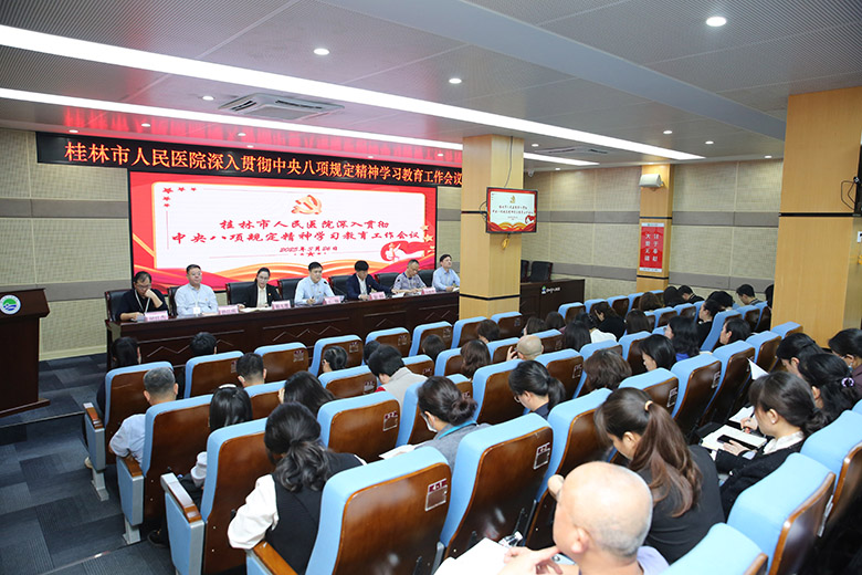 3月26日,桂林市人民医院召开深入贯彻中央八项规定精神学习教育工作会议,传达学习中央、自治区、桂林市和市卫健委关于开展深入贯彻中央八项规定精神学习教育的有关要求,研究部署医院深入贯彻中央八项规定精神学习教育工作。会议由医院党委副书记、院长秦科主持,党委书记王畅作部署讲话,党委领导班子、纪委委员、党支部书记、职能科室中层干部参加会议。