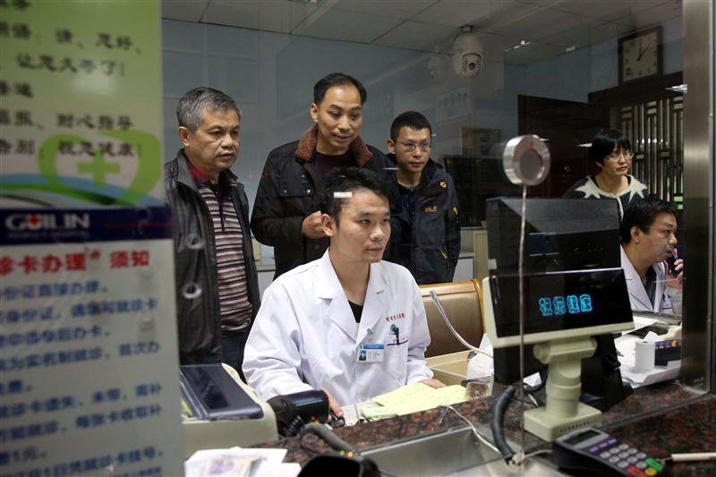9日晚11点30分在门诊七楼信息科办公室,书记谭宇、副院长杨青以及信息科、药学部、医保科、审计科、财务科、急诊科等重点部门的负责人仍在积极讨论研究。“时间还有多久?还有没解决的问题吗?”“各部门要再次确认,所有信息系统是否能在今晚零时顺利完成新旧交替!”“没有问题了,刚刚测试过能正常切换了!”“急诊收费这边也交代做好解释工作了!”通过大家的努力,药品零差率销售等各项工作全部就绪。零时一到,系统正式切换后,书记谭宇、副院长杨青又带领大家分别来到急诊收费处、急诊取药处、骨科一病区、神经内科一病区等现场,查看挂号、收费、药价等系统是否按照新标准执行。