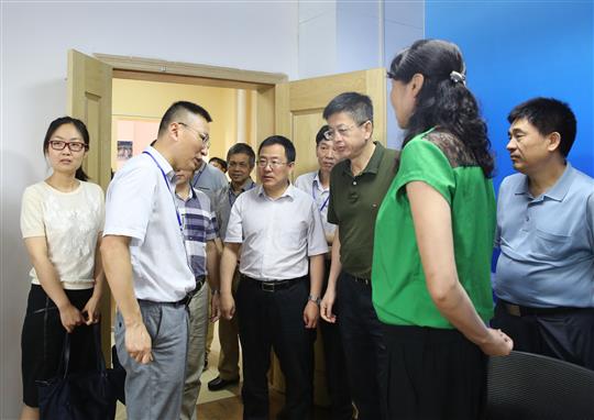 督察组一行首先来到医院门诊大厅广西居民健康卡自助服务机前,任西岳处长询问了关于居民健康卡的使用流程,当了解到桂林市人民医院已于今年3月在广西率先开通居民健康卡时,他认为要充分利用好该卡,更好的缓解患者预约就诊、挂号、缴费、打印检验报告、取药等排长队的问题。接着督察组一行来到位于门诊大楼六楼的我市市直医院首个远程医学中心参观,医院负责人王昌明向大家介绍了远程医学中心的主要功能。此时,儿科专家正在与县区儿科医生交流病例,督导组旁听了远程双方的交流后,认为该中心大大方便了患者就医,同时也为医务人员进行医疗学术交流提供了良好的平台。