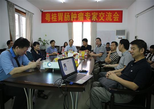 为造福肿瘤患者,传递肿瘤治疗领域新进展,促进学术交流, 7月8日上午,2017年粤桂胃肠肿瘤专家交流会在桂林市人民医院举行。会议特邀全国知名专家、南方医院肿瘤科主任廖旺军教授亲临指导交流。来自南方医院及桂林、柳州的普通外科、肿瘤科、放射科、病理科专家共30余人参加了交流会。会议围绕胃肠肿瘤规范化治疗策略、前沿的胃肠临床研究结果和未来展望进行了深入研讨。