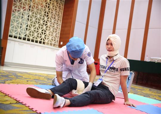26日上午,在山水大酒店会议厅里,桂林市卫生应急技能竞赛——突发事件紧急医学救援竞赛的各项准备工作就绪,裁判组组长一声令下,三个比赛项目同时开始。比赛分单人心肺复苏操作、止血包扎和脊柱固定搬运三个项目。我院派出三名来自急诊科一线的医护人员参赛,他们分别是医生熊利明、舒新鑫,护士曾辉。经过赛前充分备战,三名选手各个胸有成竹,沉着应战。作为第一个亮相的比赛队,三名选手逐个进行操作展示,大家发挥稳定、以教科书式的操作,完成了一项项比赛并取得了优异的成绩。在27日上午进行的理论考试中,三人又以扎实的理论功底成功过关。最终三名选手凭借个人总成绩,以绝对的优势战胜了来自全市及县区的22个参赛队、66名参赛选手,赢取了此次竞赛三个个人一等奖。三人的出色表现,让他们的团队又以总分最高分获得了团体一等奖的好成绩。