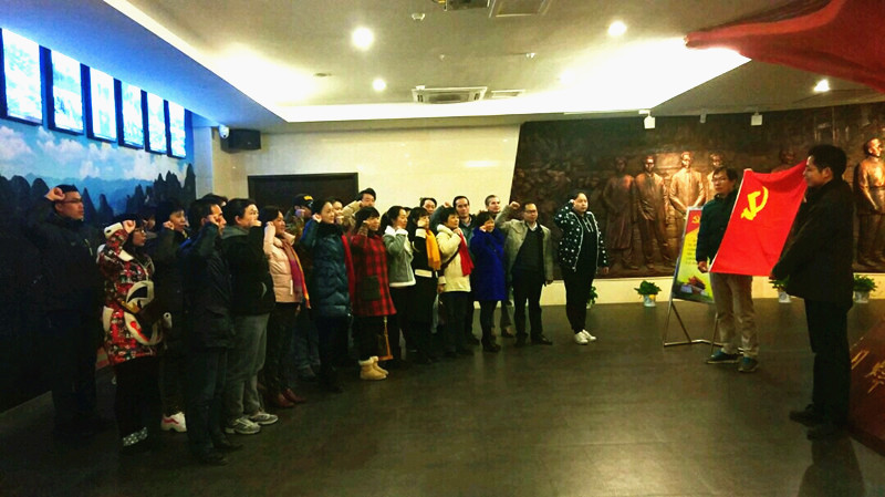 “我志愿加入中国共产党……”上午10点,在纪念馆中,近40名来自职能、后勤部门的党员们胸带党徽,怀着无比崇敬的心情,面对鲜红的党旗高举右手庄严宣誓,重温了入党誓词。以此进一步坚定了爱党、信党、跟党走的理想信念。