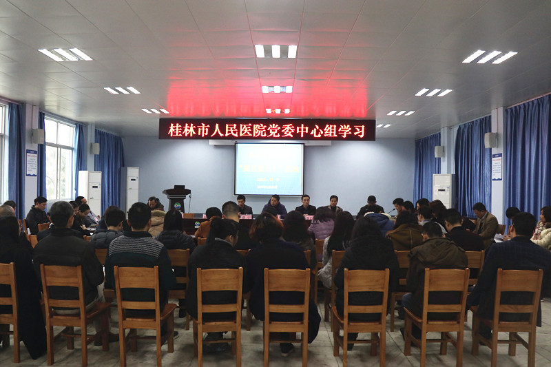 12月29日下午,桂林市人民医院在四楼学术报告厅组织党委理论学习中心组带职能科室开展“两学一做”学习教育常态化制度化第四专题——“增强‘四个意识’、坚定‘四个自信’,切实把十九大精神学习成果融入为医院发展服务中”专题学习,同时对医院两起服务意识不强典型案例进行了讨论。