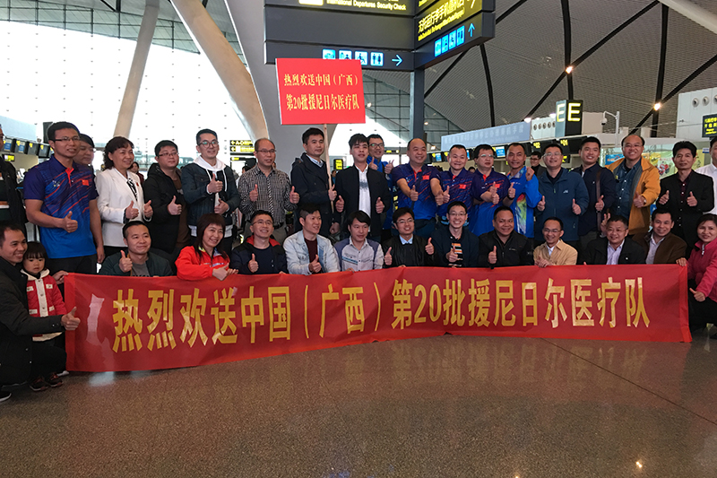 1月26日,满载着组织的嘱托和亲友同事的祝福,桂林市人民医院赵杰、何国才、王一成3位医务人员随广西第20批援尼日尔医疗队共计36人踏上征程,前往条件十分艰苦的非洲国家尼日尔开展为期1年的援外医疗任务。