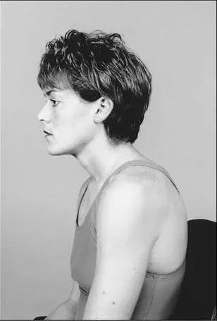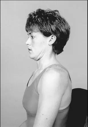 Step1:坐在椅子上,平视前方,并完全放松。此时头部会自然突出。