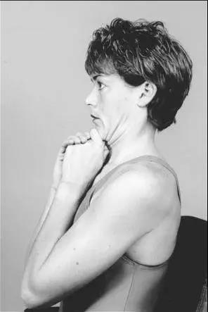 Step3 当头部向后移动到最大幅度后,再做头部回缩姿势(如图)。双手可以放在下巴上,辅助头部缓慢地向后推,然后放松,这时头部和颈部会恢复自然突出的姿势(Step1)。重复这组动作,请确保动作幅度达到最大。
