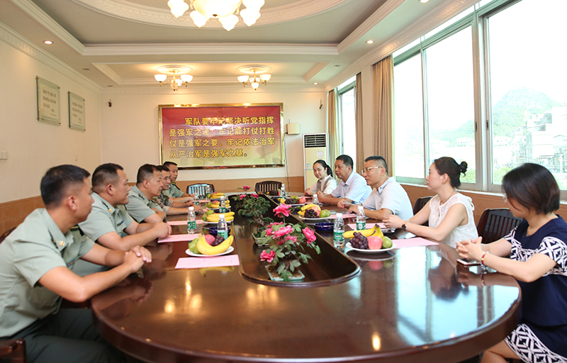7月26日,院领导王昌明、张惠成一行来到桂林某预备役通讯团开展慰问,王昌明代表医院向部队官兵送上了节日的祝福及慰问品,感谢他们为保卫国家安全作出的贡献。座谈会上,军地双方还就近期工作的开展情况进行了通报。王昌明特别向部队官兵介绍了医院的建设情况及未来的发展规划,并表示,医院在将一如既往的支持军队建设,全力做好部队的医疗保障工作。