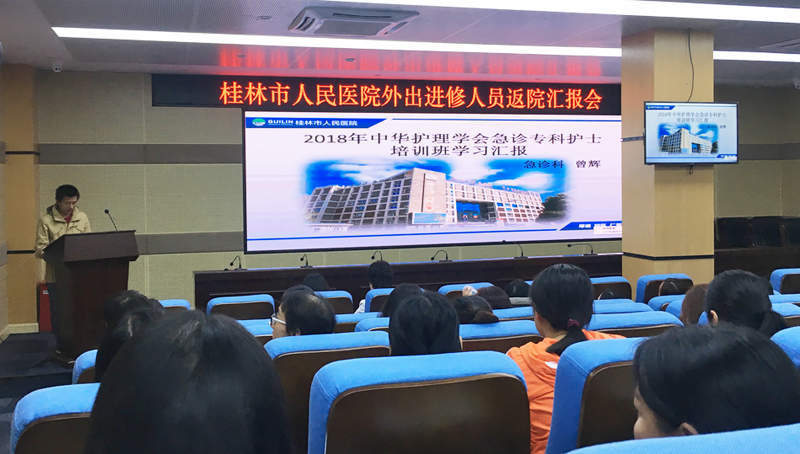 日前,医院护理部在行政办公楼二楼学术厅召开10月份外出进修人员汇报会,要求全院护理人员要明确进修目标,外出进修返院护士要积极开展护理品质提升项目。全院各护理单元共99人参加活动。