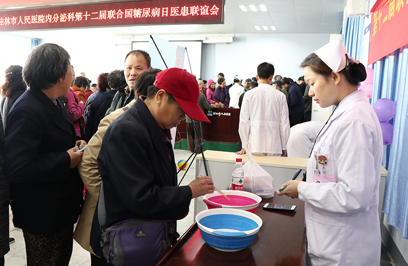 在“联合国糖尿病日”即将到来之际,11月9日上午,桂林市人民医院内分泌科又迎来了一年一度的医患联谊会。150名糖友和家人们来到医院四楼礼堂与医务人员共同参加了这个活动。