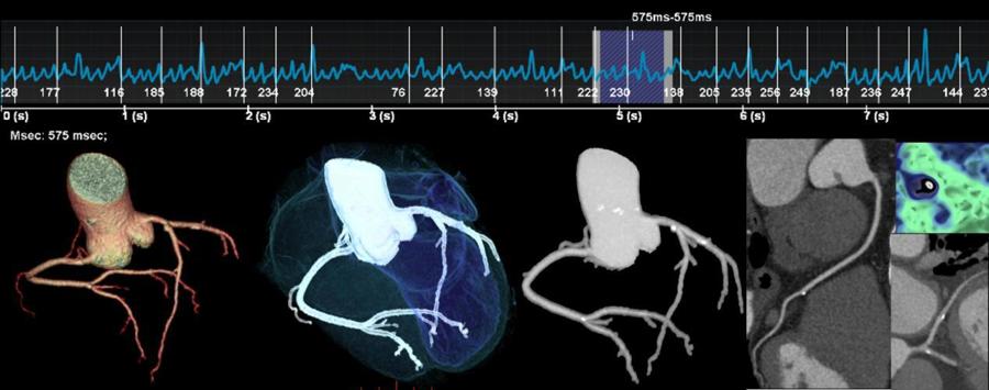 Revolution CT同时解决了心脏扫描过程中高心率、心率不齐、房颤和屏气困难等四个难题。Revolution CT在各种心率和心律条件下,只需一个心跳时间便可完成精细的心脏检查,整个成像过程不超过1秒,无需训练吸气闭气便可完成心脏冠状动脉成像。