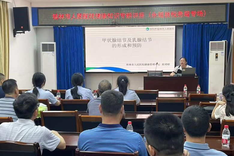 为深化党建业务融合,普及健康知识,近日,桂林市人民医院健康管理中心党支部组织党员医护团队走进永福县税务局,开展“健康护航”专题知识讲座。