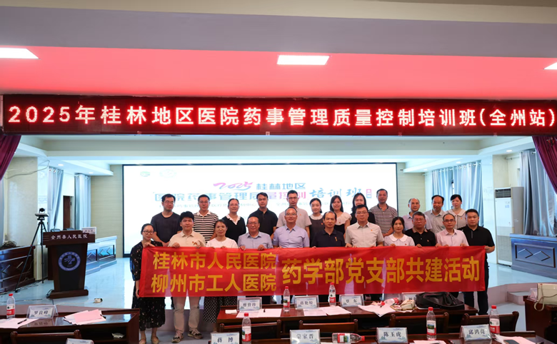 8月6日,桂林市人民医院药学部党支部联合桂林市药事管理医疗质量控制中心,邀请柳州市工人医院药学部党支部赴桂林开展“党建+外联”交流活动,并共同参与在全州县人民医院举办的桂林地区医院药事管理质量控制培训班(全州站)。