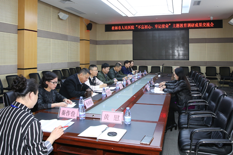 11月15日上午,桂林市人民医院在会议室召开“不忘初心、牢记使命”主题教育调研成果交流会。市卫健委主题教育第三巡回指导组副组长陈德享、组员蒋蕾应邀到会指导,市人民医院党委书记谭宇主持会议,医院党政领导班子成员等参加会议。