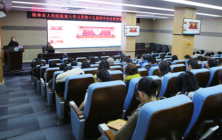 12月26日下午,为深入学习宣传贯彻党的十九届四中全会重要精神,推动全院迅速掀起学习宣传贯彻全会精神的热潮,桂林市人民医院组织宣讲党的十九届四中全会重要精神专题党课,特邀桂林市理论政策面对面宣讲团成员、市党建研究会常务副会长何平教授主讲。医院领导班子成员、中层干部、各党支部书记、党员等150余人参加。