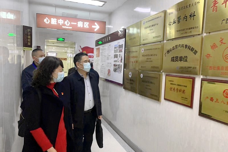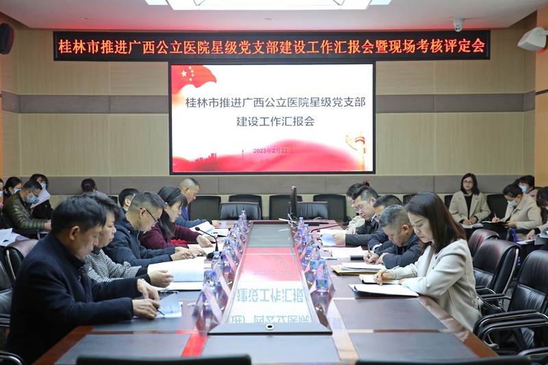 2月22日上午,由自治区卫生健康委医政医管处处长吴才林、广西医科大学附属武鸣医院党委副书记、纪委书记潘文海等5位专家组成的广西公立医院五星级党支部评定考核检查组,在桂林市委组织部、桂林市卫生健康委相关负责人的陪同下,到桂林市人民医院开展广西公立医院星级党支部评定抽检工作,对该院星级党支部评定进行现场考核。医院党委书记王畅,党委副书记周永国参加考核活动。