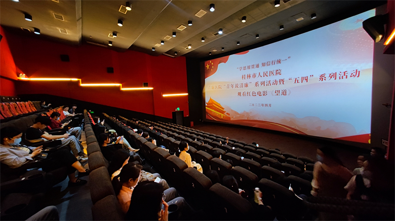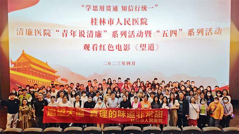 为学习贯彻党的二十大精神,筑牢新时代团结奋斗的共同思想政治基础。4月19日下午,桂林市人民医院开展“青年说清廉”系列活动,组织全院青年职工160余人集体观看红色电影《望道》。