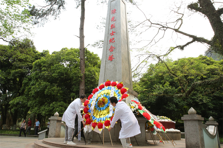 为赓续红色血脉,营造崇尚英烈浓厚氛围,4月3日上午,桂林市人民医院党委、团委联合象山街道文明社区“大党委”开展“缅怀革命先烈 传承红色基因”主题党团日活动。市卫健委党员代表、医院党团员代表、社区“大党委”单位代表等近50人参加。