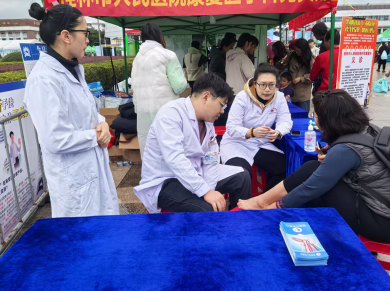 3月15日,在桂林半程马拉松开跑前,桂林市人民医院骨科第一党支部携手康复医学科党支部组织党员来到市中心广场,以“强健骨骼,乐跑桂马”为主题开展公益义诊活动,用专业与热忱为跑者和市民送上健康礼,提升公众对骨骼健康的认识。